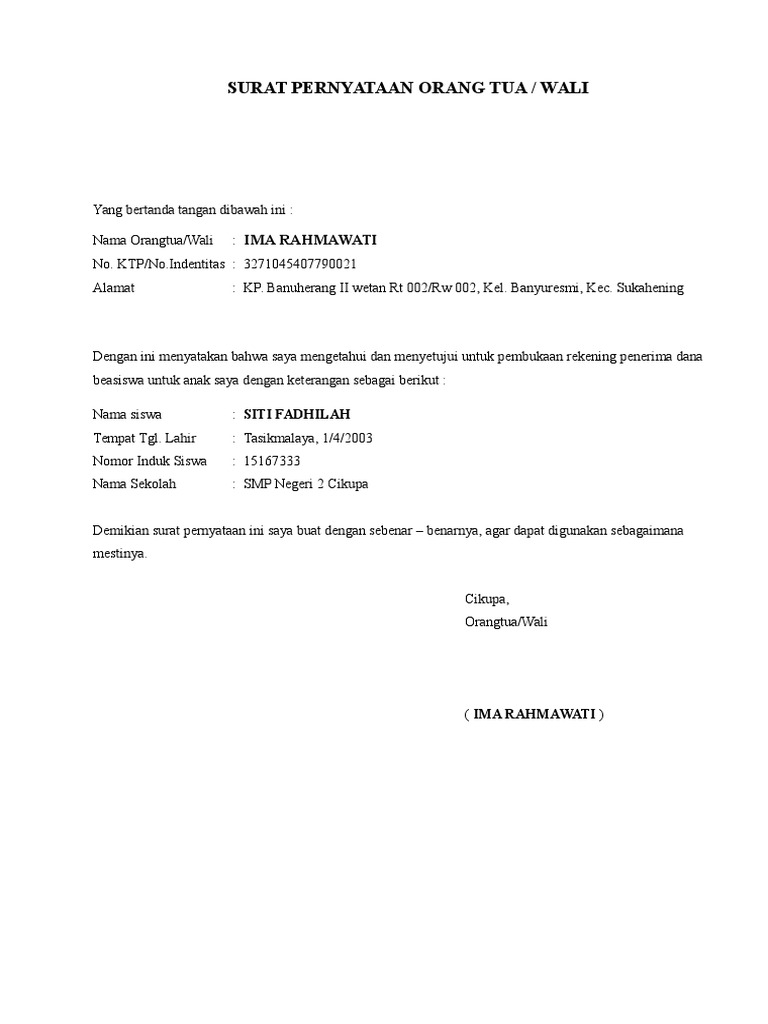 Contoh surat pernyataan orang tua 4 contoh surat pernyataan orang tua wali murid berikut adalah contoh surat pernyataan orang tua murid atau wali yang bisa dipergunakan untuk siswa siswi sd smp sma atau mahasiswa yg sedang kuliah. Salah satu surat resmi yang sering dibuat oleh pihak sekolah adalah surat undangan orang tua atau wali siswa diantaranya untuk menghadapi kenaikan kelas sekaligus pembagian raport atau untuk menghadapi salah satu acara yang diadakan oleh pihak sekolah dengan orang tua atau. 214 cibinong bogor 4. Ada banyak sekali jenis surat izin orang tua baik itu untuk keperluan kerja sekolah kuliah kegiatan organisasi dan masih banyak yang lainnya. Contoh surat pernyataan orang tua setiap anak tentu akan menjadi tanggung jawab orang tua. Dalam contoh surat pemberitahuan kegiatan kepada orang tua ini memberitahukan kepada orang tua bahwa akan diadakan kegiatan mpls atau masa pengenalan lingkungan sekolah yang dulu biasa disebut dengan mos masa orientasi sekolah.
