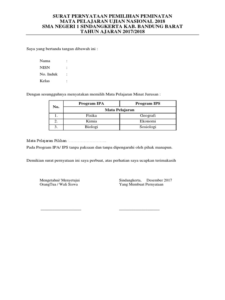 Contoh surat pernyataan pindah jurusan dari ips ke ipa. Mengajukan permohonan untuk pindah dari program reguler a ke program reguler bpermohonan ini saya ajukan karena saya bekerjasegala urusan administrasi dan kewajiban yang terkait dengan perpindahan ini akan saya selesaikan secepatnya setelah mendapat persetujuan dari bapak. Itulah yang dapat kami bagikan terkait contoh surat pernyataan pindah jurusan dari ips ke ipa sma. Contoh surat pernyataan pindah jurusan sekolah. Contoh surat lamaran dan pernyataan cp. Dengan ini saya menyampaikan surat pernyataan ini bhwasanya saya ingin meminta utk di pindah jurusan dari ips ke ipa krena saya lebih tertarik dengan pelajran di ipaserta juga di jurusan ipa merupakan cita2 yg akan saya wujudkan kelak. Seperti contoh surat rekomendasi pindah sekolah antar provinsi syarat pindah sekolah antar kabupaten cara pindah sekolah dari smp ke mts cara pindah sekolah dari swasta ke negeri contoh alasan pindah sekolah contoh surat permohonan masuk sekolah hingga prosedur mutasi siswa ada di sini.