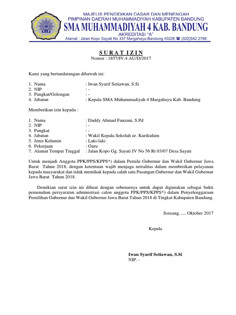 Yang akan kita bahas kali ini adalah contoh surat rekomendasi untuk memindahkan tugas khusus untuk kita profesi sebagai guru pns. Surat pernyataan persetujuan ini kami buat berdasarkan. Untuk download file contoh surat ijin atasan silahkan klik di sini. Yogyakarta 01 april 2012. 15 contoh surat permohonan izin untuk berbagai kepentingan walaupun penggunaan surat belakagan ini sudah semakin menurun namun masih ada beberapa contoh surat yang tetap digunakan hingga sekarang. Bagi yang membutuhkan format surat surat untuk pendataan pemilih pada pileg 2014 dapat di download dari link link di bawah ini.