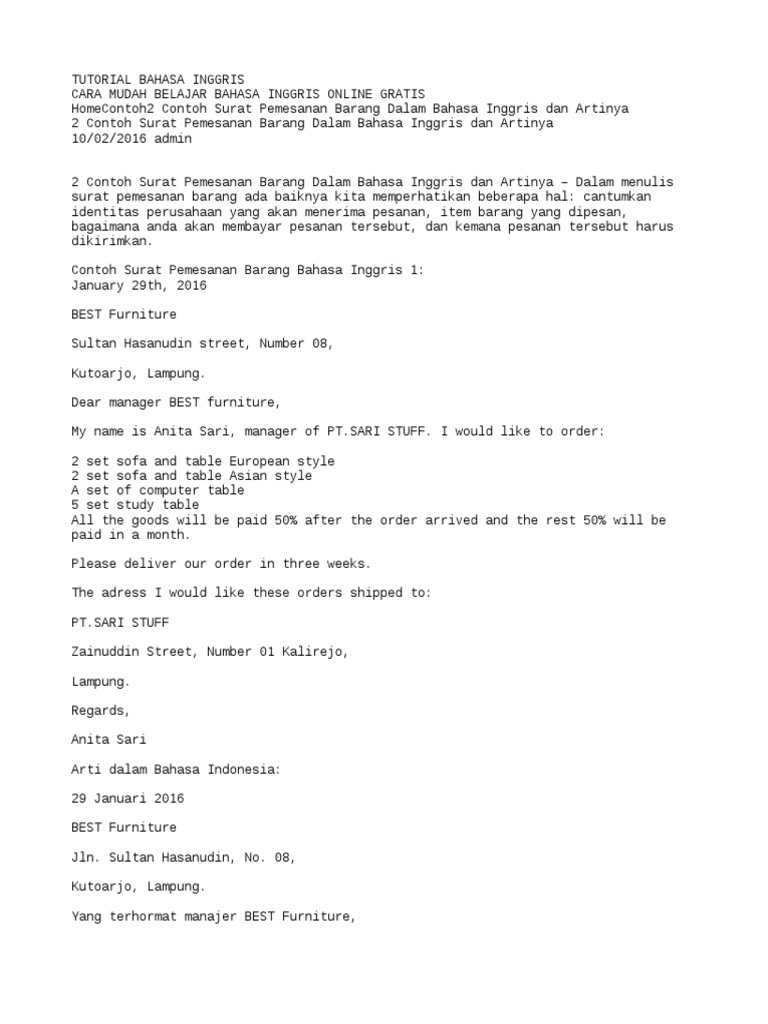 Surat pesanan ini sangat penting terutama sebagai bukti jika ingin klaim. Contoh surat pesanan barang furniture.