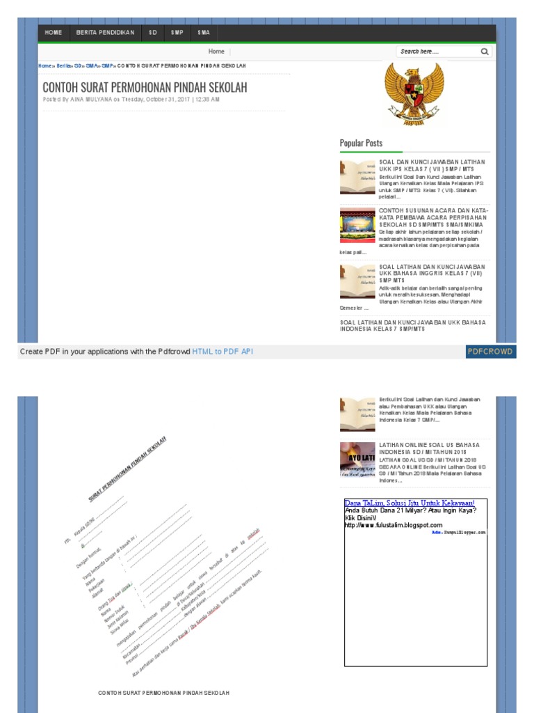 Contoh Surat Keterangan Pindah Sekolah Siswa Paud Tk Tpa