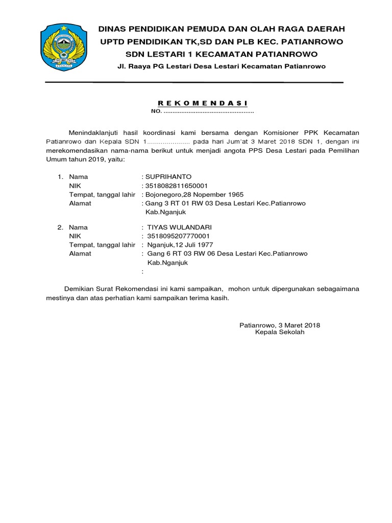 Bagaimana format surat rekomendasi untuk pps di desa. Contoh format surat rekomendasi pps dari desa atau contoh surat rekomendasi kepala desa untuk sekretariat pps terbaru tahun 2020. Download doc surat yang artinya kertas yang bertulis atau secarik kertas sebagai tanda atau keterangan sesuatu yang ditulis. Contoh dan format penulisan surat rekomendasi sekolah dari kepala desa untuk persayaratan mengajukan permohonan izin operasional pesantren ke kementrian agama. Saat berkomunikasi dalam keseharian kita saling memberikan informasi antara satu dengan. Contoh surat rekomendasi kepala desa keuchik untuk bantuan rehap rumah.