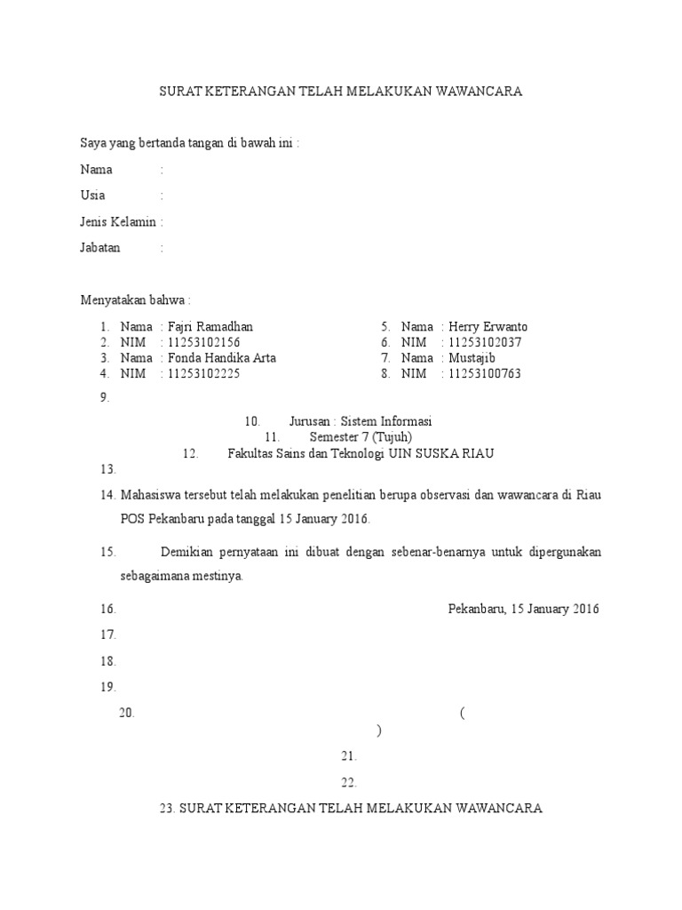 Dibawah ini ada beberapa contoh surat keterangan telah melakukan penelitian skripsi tinggal di kondisikan dan di ganti sesuai dengan pemakainnya. Ada banyak format yang telah tersedia di internet hanya saja variasinya tak terlalu banyak. Surat keterangan penelitian ini dapat dijadikan sebagai bukti nantinya. 6741153yatratrskv2013 yang bertanda tangan di bawah ini. Telah selesai melakukan penelitian di madrasah tsanawiyah mts muhammadiyah 2 kedungkandang malang jawa timur pada tanggal 10 april 2012 sampai tanggal 01 juni 2012 dengan baik. Contoh surat pernyataan telah melakukan penelitian surat pernyataan nomor.