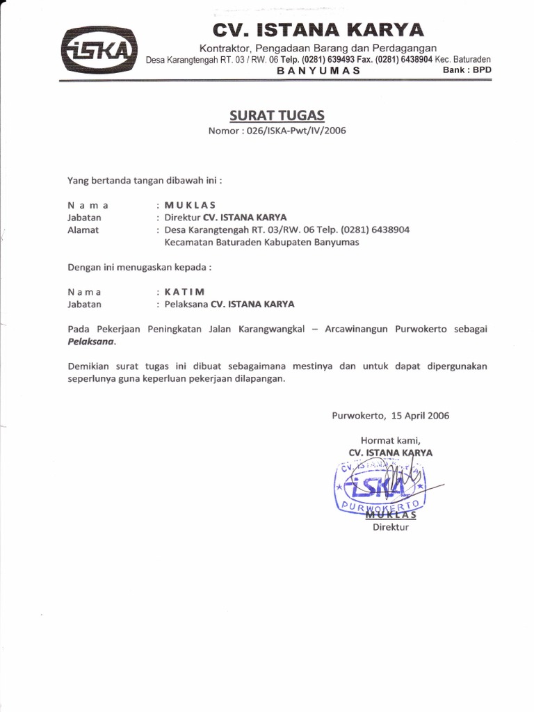 Jika anda sedang mencari informasi mengenai surat tugas saat ini anda membaca artikel yang tepat. Contoh rab dan gambar sumur bor dan towernya. Kak pelatihan auditor spi. Surat ini diterbitkan oleh atasan dan diberikan kepada bawahan dengan tujuan memberikan suatu tugas yang harus diselesaikan dalam jangka waktu tertentu. Disini kami akan bahas seputar surat tugas mulai dari pengertian hingga contoh surat tugas yang baik dan benar. Kembali lagi kita akan membahas seputar dunia surat menyurat.