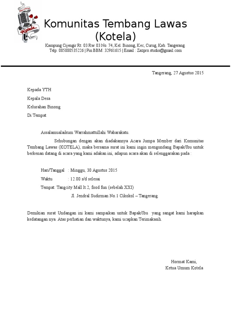 15 Contoh Surat Undangan Resmi Tidak Resmi Rapat Pengajian