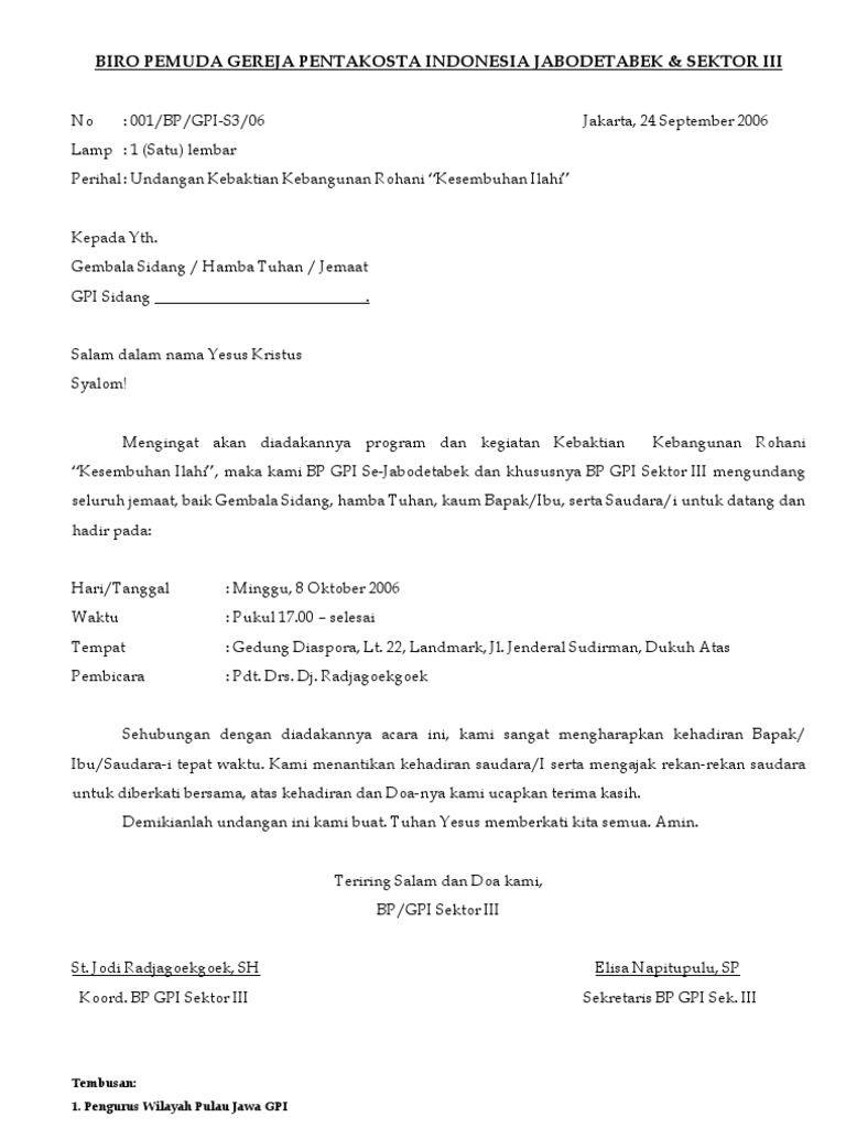 Contoh surat undangan kegiatan gereja. Karena berasal dari lembaga maka surat ini dinyatakan sebagai surat resmi yang harus menggunakan bahasa yang formal baikbaku sopan padat dan jelas. Dalam pelaksanaan suatu kegiatan rapat kita tidak bisa begitu saja mengadakannya tanpa suatu pemberitahuan terlebih dahulu. Untuk mengundang seorang pembicara maka kita perlu menyampaikan surat undangan untuk menjadi pembicara secara baik. Contoh surat undangan kita tahu surat undangan adalah sebuah tulisan di dalam kertas yang memuat ajakan kepada orang lain baik perorangan maupun kelompok untuk menghadiri kegiatan tertentu. 2325 surat kinerja pengurus dan kegiatan rapat kerja ranting v ke muda gereja protestan maluku daerah kota ambon cabang ebenhaezer ini adalah contoh kartu undangan khitanan full coloration memakai foto desain undangan tergolong unik karena undangan ini di desain saat lagi musim bola contoh surat nikah gereja. 2325 surat kinerja pengurus dan kegiatan rapat kerja ranting v ke muda gereja protestan maluku daerah kota ambon cabang ebenhaezer ini adalah contoh kartu undangan khitanan full color memakai foto desain undangan tergolong unik karena undangan ini di desain saat lagi musim bola contoh surat nikah gereja.
