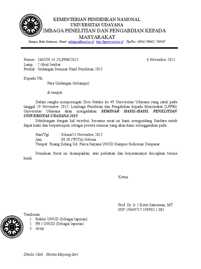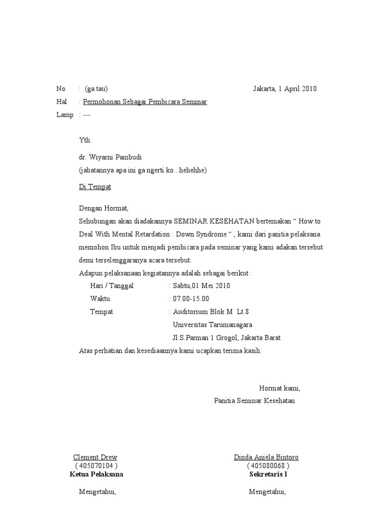 Contoh surat undangan seminar dalam bahasa inggris. Bagi kalian yang memiliki bisnis atau menjadi admin di perusahaan haruslah mengetahui bagaimana cara membuat surat yang baik dan benar. Mohon maaf apabila banyak kesalahan dalam penulisan artikel atau informasi tersebut yang ada. Kecuali jika anda sudah terbiasa dan sudah fasih berbahasa inggris maka hal tersebut mungkin tidak akan menjadi masalah. Baik pada artikel kali ini admin akan membagikan contoh surat undangan dalam bahasa inggris untuk sebuah acara yang formal. Mudah mudahan bermanfaat buat sahabat sbi dirumah. Bagaimana contoh dari surat undangan invitation letter untuk pembicara keynote speaker maupun invited speaker dalam sebuah konferensi seminar workshop maupun simposium akan ane berikan dalam postingan berikut ini.
