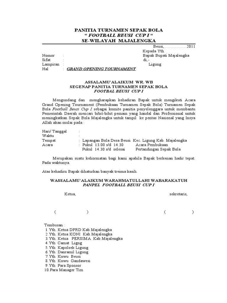 Jika ada yang kurang jelas silahkan berikan komentar kamu pada kolom dibawah ini. Putra ke 2 bapak dulgani dan ibu sahati. Contoh surat undangan kompetisi sepak bola download disini bagikan. Demikianlah contoh surat undangan open turnamen sepak bola ini.