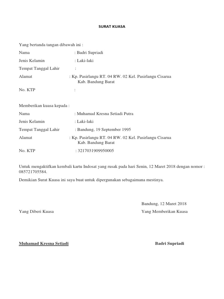 Download contoh surat kuasa untuk berbagai keperluan september 13 2019 september 9 2019 by nurul saputro surat kuasa adalah surat yang dibuat untuk memberikan wewenang kepada orang lain dari seseorang. Download contoh surat kuasa advokat pdf dan doc posted on march 3 2020 july 22 2020 by bikin cv download contoh surat kuasa advokatpengacara pdf dan doc surat kuasa merupakan surat yang berisi pemberian kuasa atau wewenang kepada seseorang yang sudah dapat kepercayaan atau orang yang telah dipercayai sehingga orang tersebut dapat bertindak atas nama pemberi kuasa.